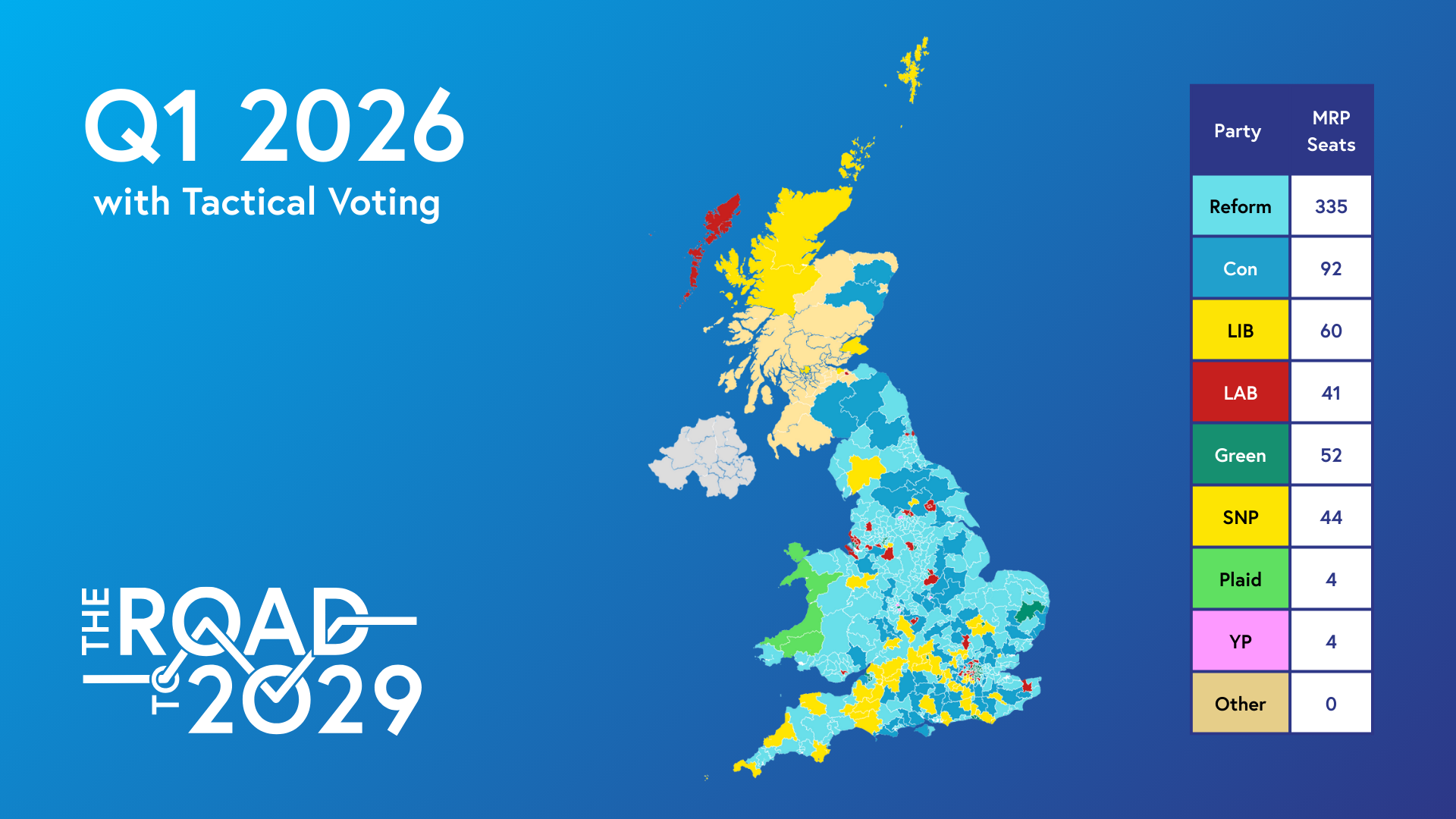 Nationally, if an election was held tomorrow, the poll puts Reform on 31% of the vote making it the largest party and on course to win 335 seats. This would be enough to form a small overall majority.