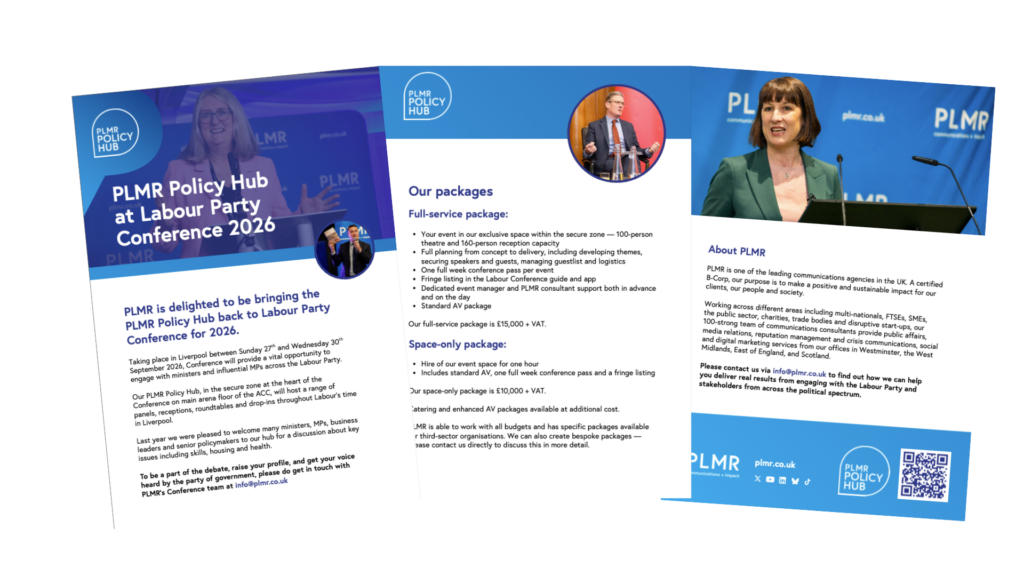 Be part of the debate in the PLMR Policy Hub at Labour Party Conference 2025 – in the heart of the secure zone.